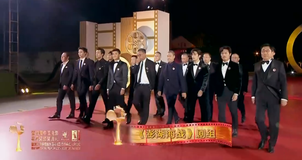《澎湖海战》不是入围影片,还没上映,可不但以最强的阵容走了红毯,还参加了颁奖典礼上的表演,显然金鸡奖在旗帜鲜明的高调支持这部电影。